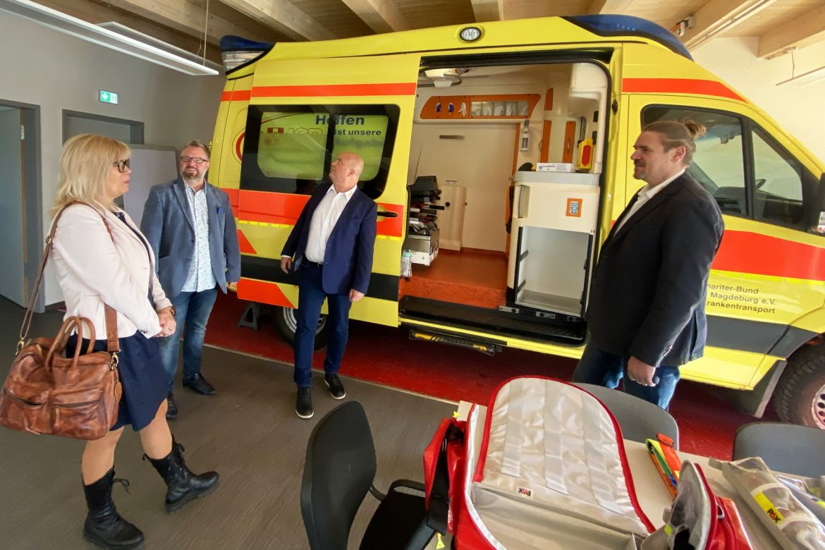 Beim Antrittsbesuch des Landesgeschäftsführers in Magdeburg bekamen auch Magdeburgs Bürgermeisterin und Sozialbeigeordnete Simone Borris und Landesvorstandsmitglied Oliver Müller Einblicke in den Alltag des ASB-Rettungsdienstes. Simone Borris sagte anerkennend: "Der ASB ist wichtiger Partner in der Daseinsvorsorge und im Katastrophenschutz der Landeshauptstadt". Gleichzeitig dankte sie den Samariter*innen für die Unterstützung bei der Bewältigung der Corona-Pandemie.