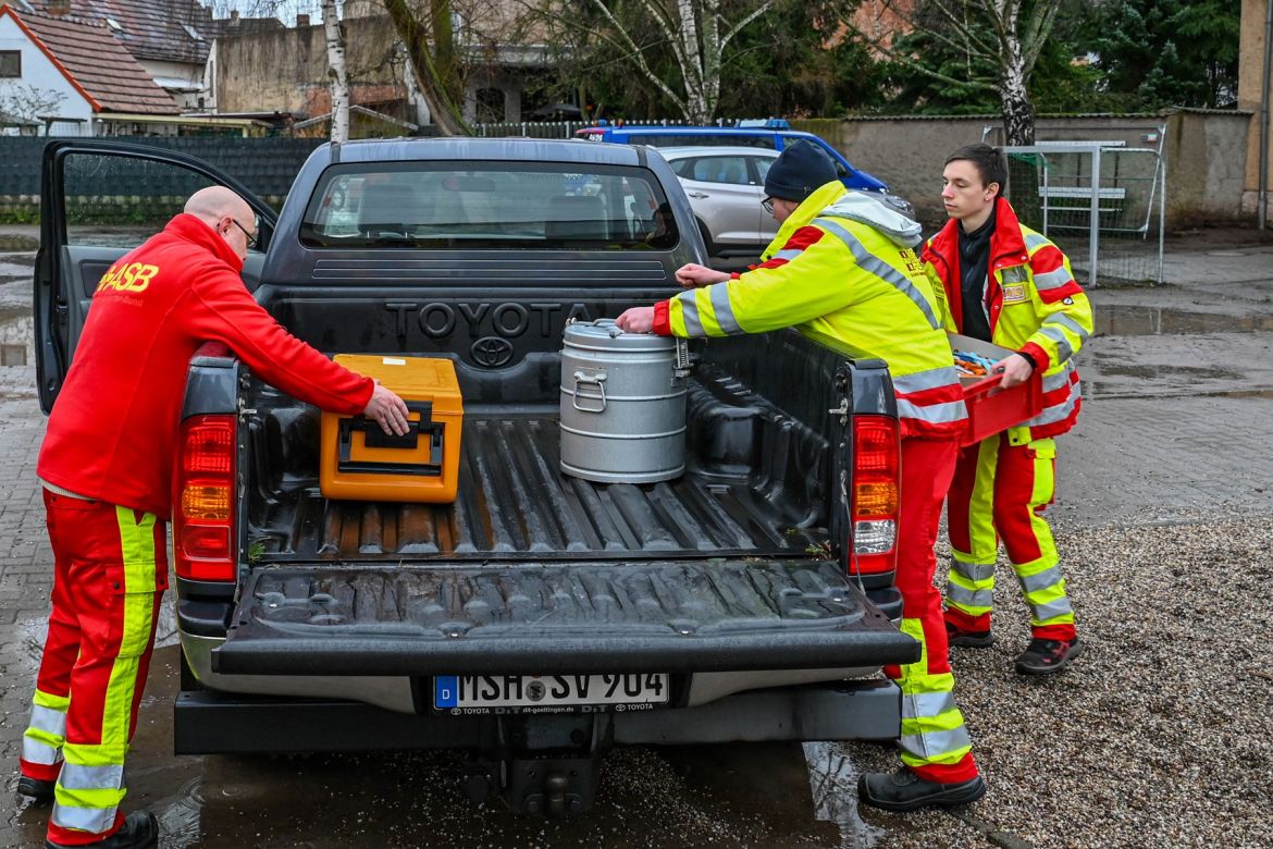 Zum Einsatz kamen außerdem freiwillig Aktive des ASB Halle/Bitterfeld. Vier ausgebildete Feldköche starteten am Dienstag, 2. Januar 2024, 6 Uhr, in das Krisengebiet an der Helme. Es galt mehrere 100 Einsatzkräfte im Hochwassergebiet mit Mahlzeiten und Getränken zu versorgen.